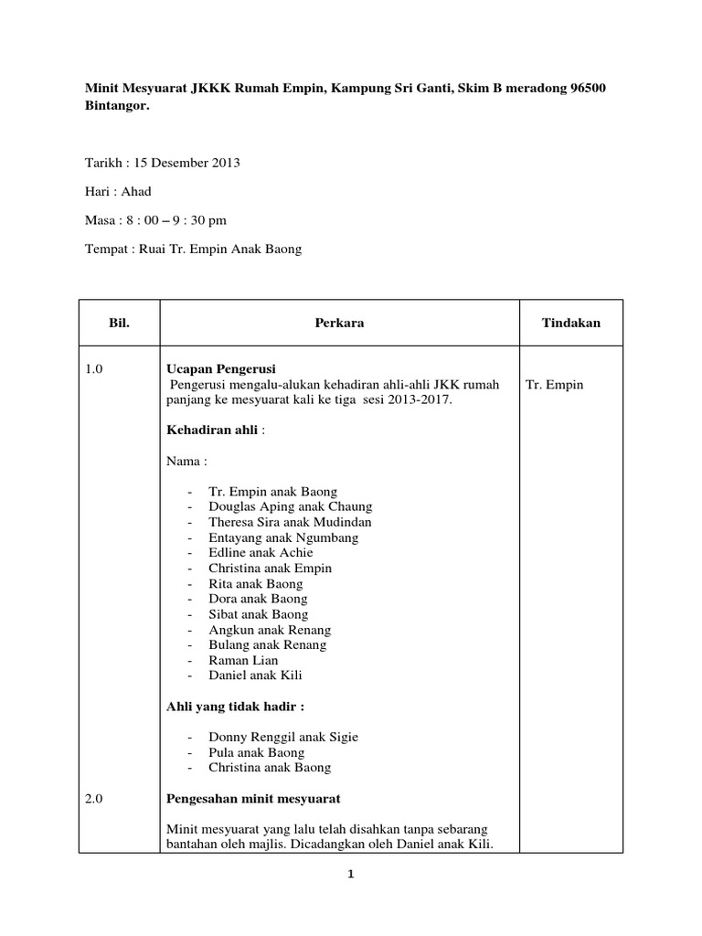 Pdf Format Penulisan Minit Mesyuarat Intan Nurashiqin Academia Edu from 0.academia-photos.com (catatkan nama mesyuarat dan bilangan mesyuarat). Smk lktp kahang timur, kluang. 2 minit mesyuarat jawatankuasa bandar selamat, minit mesyuarat kelab kebudayaan docx. 1.2 pengerusi memaklumkan bahawa tujuan mesyuarat ini diadakan adalah untuk membincangkan perancangan dan pelaksanaan program dan persatuan sepanjang. Mohd januri aiyub jabatan pengajian melayu institut pendidikan guru kampus sultan abdul halim fungsi minit mesyuarat menjadi bahan rujukan, tindakan susulan, pelaporan semula untuk mesyuarat akan… Use the download button below or simple online reader. 100%(2)100% found this document useful (2 votes). By kemuncuppadang opel 71981 views.
